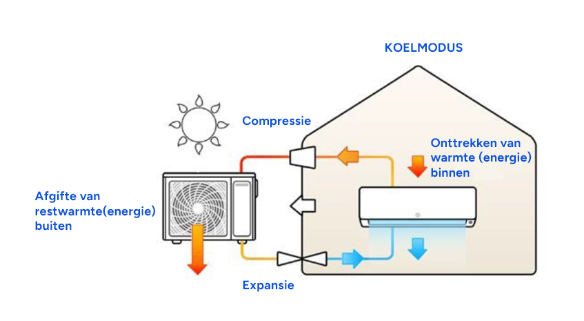 Een aircoheater is een slimme lucht/lucht warmtepomp die kan verwarmen én koelen met één systeem. Hij bestaat uit een binnenunit en een buitenunit en gebruikt stroom in combinatie met gratis energie uit de buitenlucht. De compressor zet die om in warme lucht, die de binnenunit direct de ruimte in blaast. Dat gaat snel en efficiënt, ideaal voor woningen én bedrijfsruimtes. In de zomer werkt het precies andersom: de aircoheater voert warmte af naar buiten en zorgt voor aangename koeling binnen. Je schakelt eenvoudig tussen verwarmen en koelen, perfect bij wisselende temperaturen in het voor- en najaar. Zo kies je voor comfort, lagere energiekosten en een duurzamere oplossing in één.
